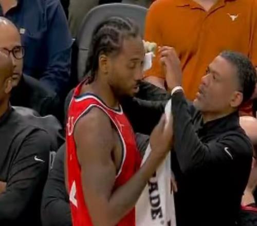 萊昂納德被德羅贊撞傷頭部下場治療。
