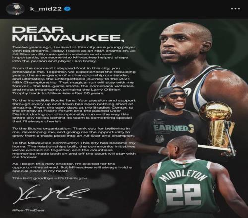 不過在離開雄鹿,并再一次被交易之后,米德爾頓說,他已經放下了對雄鹿的怨念,他知道自己已經明顯下滑了,而且交易不得不做,他理解大家。
