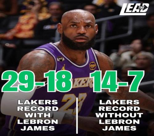 賽后根據統計,本賽季在詹姆斯出場的比賽中,湖人取得29勝18負的成績,勝率達到了62%,而在詹姆斯缺陣的比賽中,湖人的戰績為14勝7負,勝率僅為50%。
