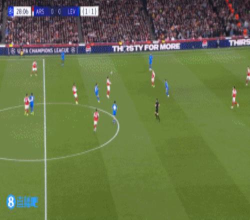 第36分鐘,阿森納中路連續頭球爭頂,特羅薩德向前做球,弧頂附近埃澤接球轉身直接爆射轟出超級世界波!阿森納1-0領先↓