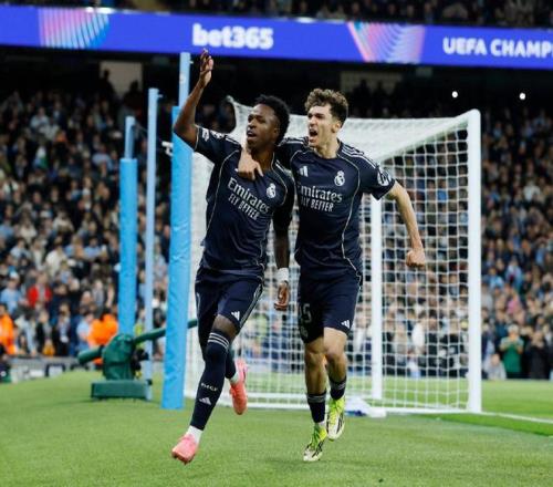 同樣是首回合0-3落敗,英超豪門曼城就沒有這么幸運了。與皇馬的二番戰,曼城在開場17分鐘就被判罰了紅點套餐,比賽的懸念在這個關鍵判罰后,也提前被殺死了。維尼修斯在上下半場各入一球,曼城則是由哈蘭德,打入了本隊在兩回合比賽的唯一一粒進球。最終皇馬以2-1完成了對曼城的雙殺,總比分5-1淘汰對手,輕松晉級八強。