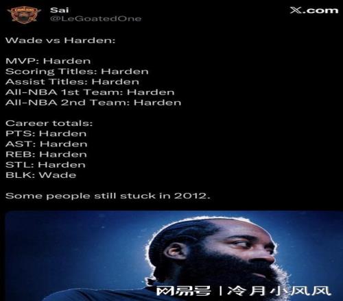 同時,貝弗利還轉發了一組雙方數據對比,結果顯示哈登在Mvp、得分王、助攻王、一陣二陣次數、總得分、總籃板、總助攻、總搶斷都比韋德多,韋德僅在總蓋帽一項上領先。兩人最巔峰的賽季對比情況顯示哈登(17-18賽季)在得分、助攻、兩分球命中率、三分球命中率、有效命中率、真實命中率、效率值、勝利貢獻值、正負值、不可替代值、球隊勝場數上全面優于韋德(05-06賽季)。