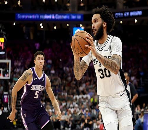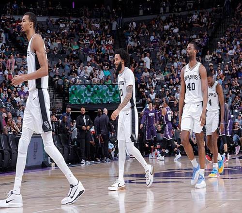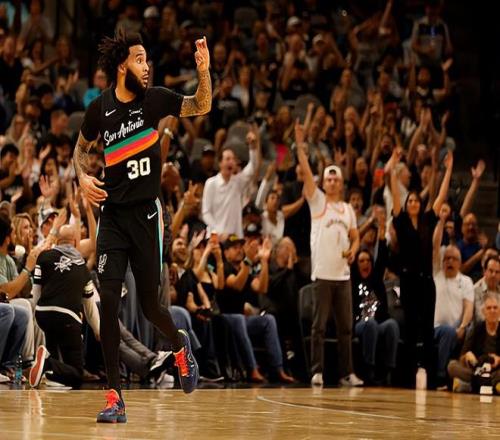 本場比賽中,馬刺的先發鋒線大將朱利安-尚帕尼(Julian Champagnie)的表現還是值得肯定的。尚帕尼全場出場23分30秒,投籃8中6,三分線外7中5,高效得到了17分1籃板1助攻的數據,還有2次失誤,正負值為+11。尚帕尼在進攻端的表現非常出色,展現出了超強的得分能力和投射能力。尚帕尼的出手次數并不多,但是他卻起到了關鍵的作用,發揮出了自己的作用。尚帕尼在防守端也依然保持了很高的水準。至少在本場比賽中,尚帕尼又一次在攻防兩端都起到了效果,在出場時間和出手次數都非常有限的情況下打出了極其出色的表現,為球隊的這場勝利做出了不小的貢獻。