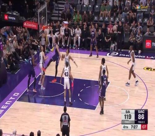拿上一場對陣馬刺的比賽來說,國王輸得非常干脆,第一節就落后了17分,最多落后38分,最終以104-132不敵馬刺。