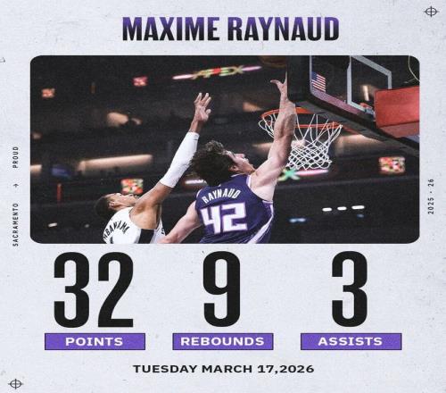 截至目前為止,雷諾一共為國王打了62場比賽,場均得到11.4分7.3籃板1.3助攻0.5蓋帽,三項命中率56.6%/25.0%/78.9%,真實命中率60.5%。