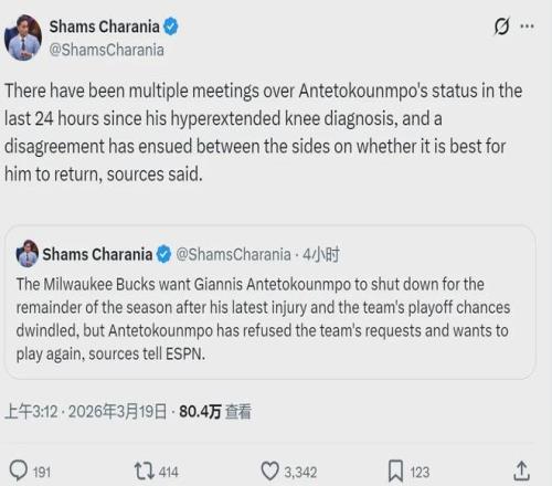 雄鹿管理層對此考慮到季后賽希望渺茫,從而希望這哥們退出本賽季剩余比賽,然而被拒絕。