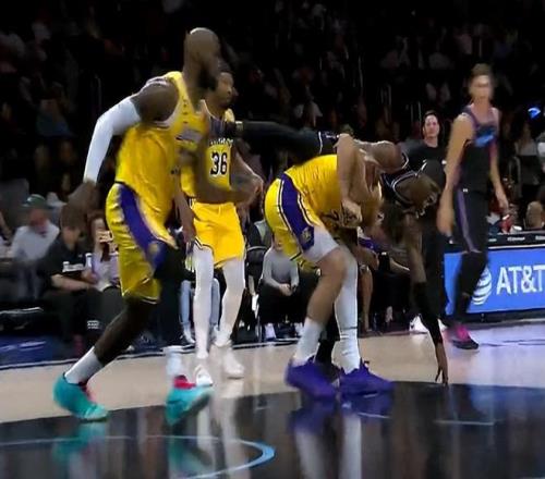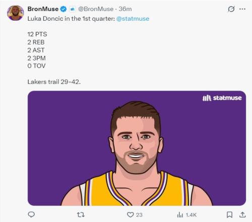 第三節開場僅僅5分鐘,東契奇5中4,三分4中3連取11分1籃板2搶斷幫助湖人完成反超。東契奇又現驚魂一幕,阿德巴約直接騎到了東契奇的背上,東子的腰部明顯不適但他沒有申請下場,三節打完東契奇24中13,三分14中7,拿到40分6籃板3助攻4搶斷,單節拿到19分。