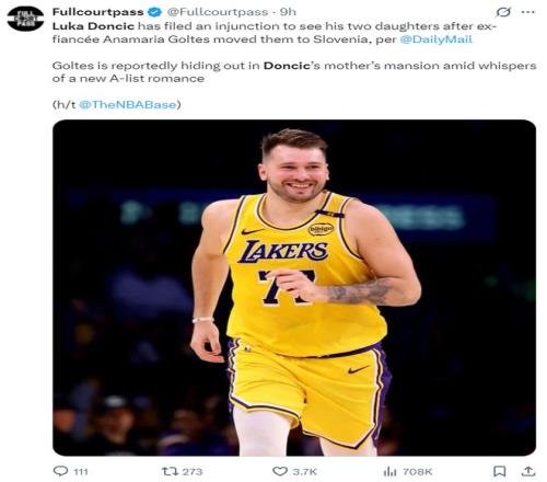 賽前又傳來了東契奇的噩耗,他已經申請強制執行令來探望他的兩個女兒,因為他的未婚妻戈爾特斯將她們帶回了斯洛文尼亞,目前戈爾特斯正躲藏在東契奇母親的豪宅里,同時有傳言稱他與某位明星緋聞纏身。(悲傷體育生愈發的凄涼)