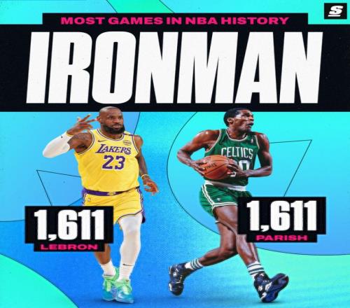 1.詹姆斯1611場(chǎng)追平帕特里什并列歷史第一;