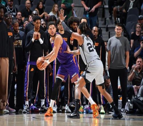 馬刺過去3場連贏黃蜂、快船與國王收獲3連勝,太陽過去3場連輸猛龍、凱爾特人與森林狼遭遇3連敗,本賽季前三次交鋒馬刺1勝2負處于下風。本場馬刺缺少加西亞與卡斯爾,太陽缺少奧尼爾、阿倫、狄龍與馬威。首節開局馬刺率先取得10-5領先,尚帕尼三分開火擴大13-7領先,馬刺持續壓制維持21-15領先。格林接連得分引領一波11-3攻勢反超比分,首節結束馬刺24-26落后太陽。首節太陽22中11,其中三分6中4,格林5中4得到9分與布克5中1僅得到2分2失誤;馬刺24中10,其中三分8中2,文班亞馬2中2得到6分3籃板1搶斷。