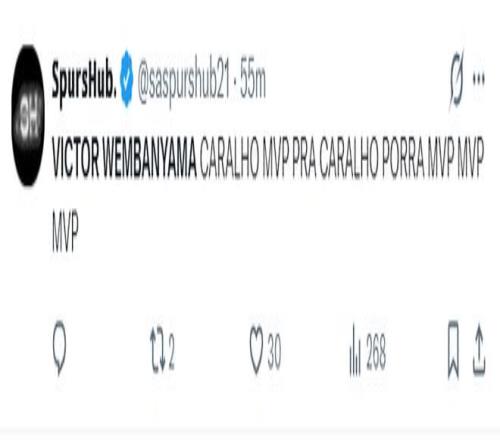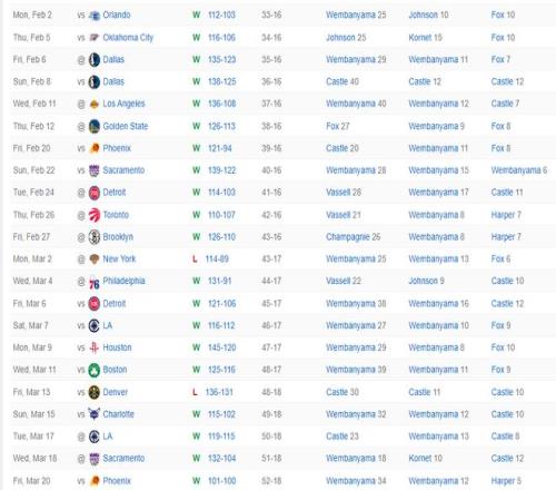 馬刺隊在過去的22場比賽中贏下了其中的20場,這也是為什么他們跟聯盟第一的雷霆只差3個勝場的關鍵,很多人都支持文班亞馬拿這個MVP,因為SGA的碰瓷讓很多球迷感到不滿。