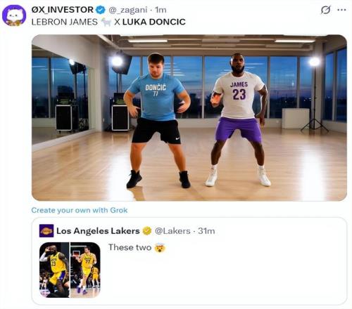 美媒轉推湖人盛贊東契奇X詹姆斯后寫道:詹姆斯/東契奇已是雙山羊。