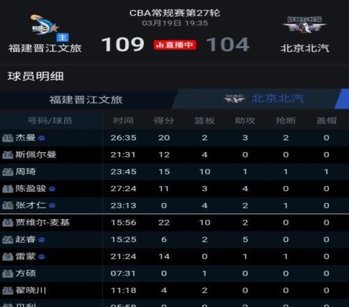 CBA常規賽步入沖刺階段,賽場容錯率趨近于零,北京北汽客場惜敗福建晉江文旅,表面看僅是一場勝負交替,實則成為撬動整個聯盟格局的支點事件。