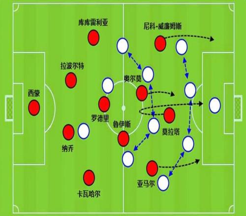首先是中鋒莫拉塔,他在上屆歐洲杯上起到了至關重要的作用。通過他的回撤反哺和串聯,帶來攻防轉換。另外一方面,左邊鋒的尼科威廉姆斯是一個小支點,他可以直接接長傳球去用力量碾壓對手的邊后衛,同時用速度去沖擊對方中衛的身側。