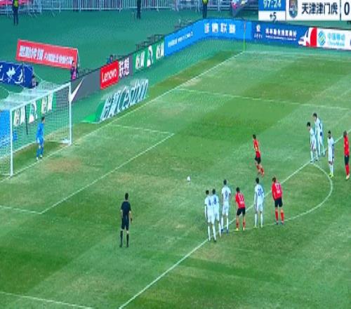 補時第8分鐘,邦本宜裕主罰點球時踢出勺子點球,將球送入球網(wǎng),打入了中超處子球。