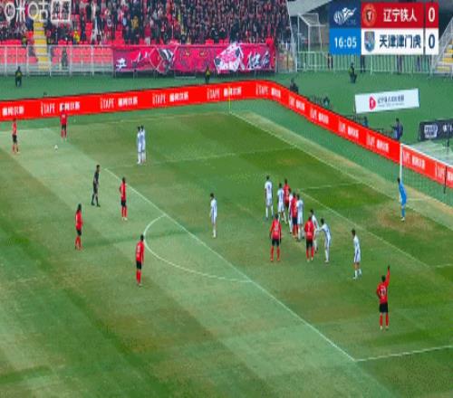 第16分鐘,遼寧鐵人利用定位球制造威脅,費利佩搶點頭槌,津門虎門將齊雨熙神勇救險。