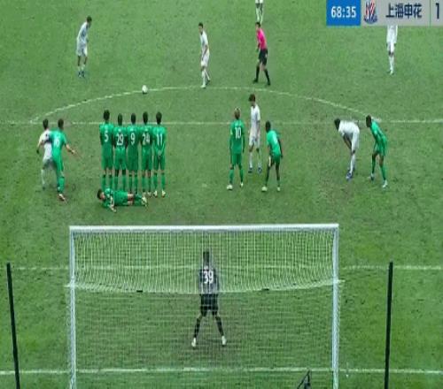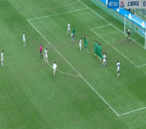 在上半場,張玉寧的進球幫助北京國安以1比0的比分領先。比賽的第66分鐘,阿卜杜海米提撞倒米內羅,陳晉一主罰任意球左腳勁射破門,1比1!