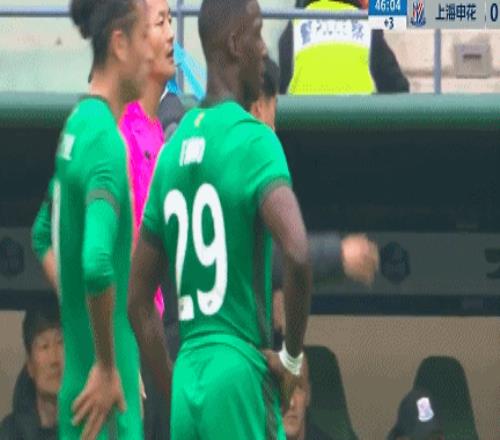 第28分鐘,張稀哲直傳之后被撞倒,法比奧同樣被撞倒,主裁判馬寧判罰法比奧越位在先。