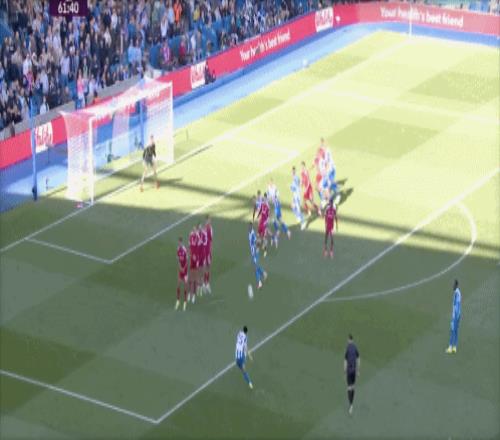 第14分鐘,布萊頓左路傳中,戈麥斯禁區后點頭球擺渡,維爾貝克力壓科納特頭球接力破門,1-0!