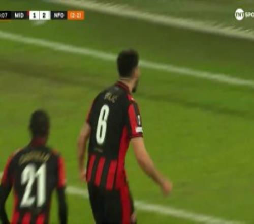 第40分鐘,巴卡瓦右路送出傳中,后點米倫科維奇頭球擺渡,多明戈斯小禁區線頭球吊射打進死角,諾丁漢森林1-0中日德蘭。↓