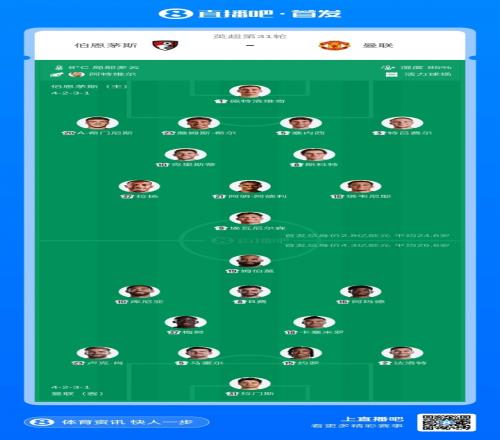 體育播報3月21日宣 英超第31輪,曼聯客戰伯恩茅斯,賽前首發公布。