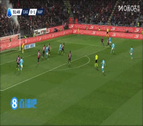 第2分鐘,麥克托米奈門前混戰中推射破門,卡利亞里0-1那不勒斯。↓