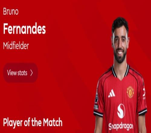 破門+造烏龍,英超官方:B費當選曼聯22伯恩茅斯全場最佳球員