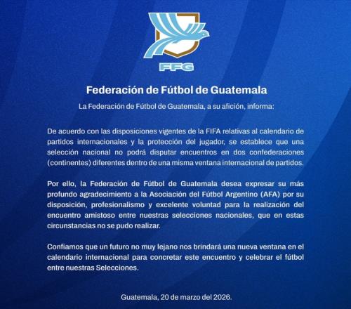 因此,危地馬拉足球協會謹向阿根廷足球協會表達最誠摯的謝意,感謝其展現出的合作態度、專業精神以及為促成兩國國家隊友誼賽所付出的卓越努力,盡管在當前情況下,該場比賽無法如期舉行。