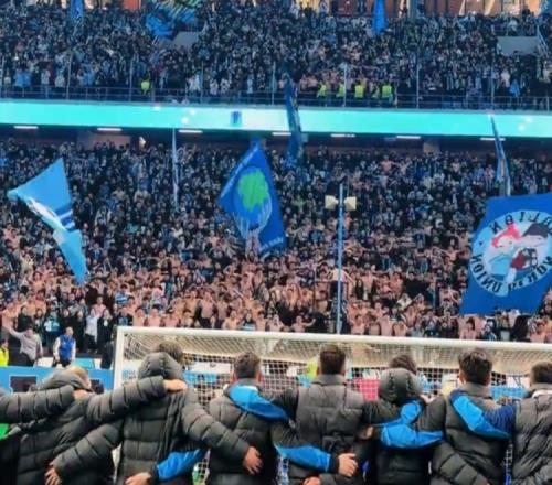 體育播報3月21日宣 中超第三輪大連英博主場1-0擊敗上海海港的賽后,英博將士們謝場時,與大連球迷共同營造了山呼海嘯般的現場氛圍。