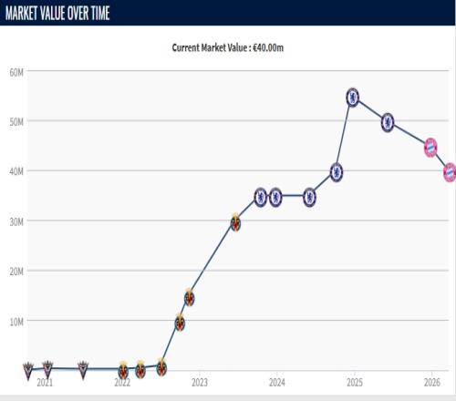 2023年夏天切爾西花費3700萬歐引進杰克遜,之后球員在藍軍也曾有過高光,巔峰身價達到5500萬歐,但作為前鋒杰克遜的把握機會能力實在太差,去年夏天切爾西令尋前鋒。在拜仁不買斷的情況下,杰克遜也不在切爾西的未來計劃中,今年夏天這位塞內加爾前鋒又要尋找自己的下家。