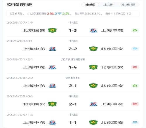 中超前兩輪比賽,國安兩連客1勝1負(fù),積負(fù)2分暫列積分榜第13,上輪北京國安客場1-2不敵山東泰山;上海申花則是1勝1平,積負(fù)6分暫列積分榜第14,上輪上海申花客場1-1戰(zhàn)平浙江隊(duì)。