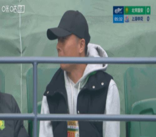 第5分鐘,鏡頭給到受傷缺陣坐在看臺(tái)觀戰(zhàn)的李磊。↓