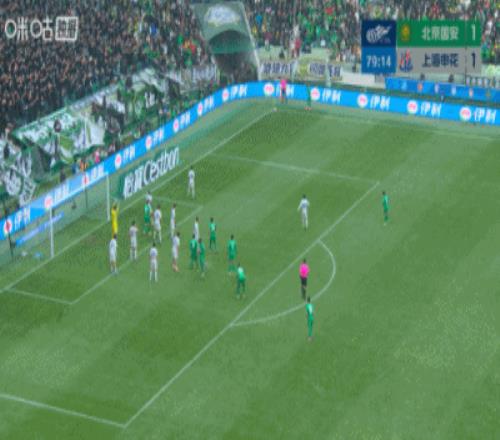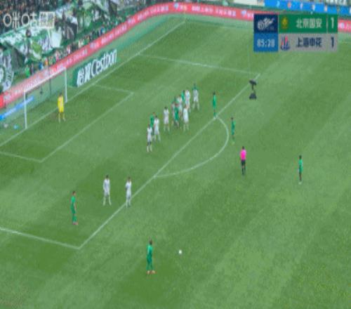 第67分鐘,陳晉一任意球直接打進(jìn)球門死角扳平比分,上海申花1-1北京國(guó)安。↓
