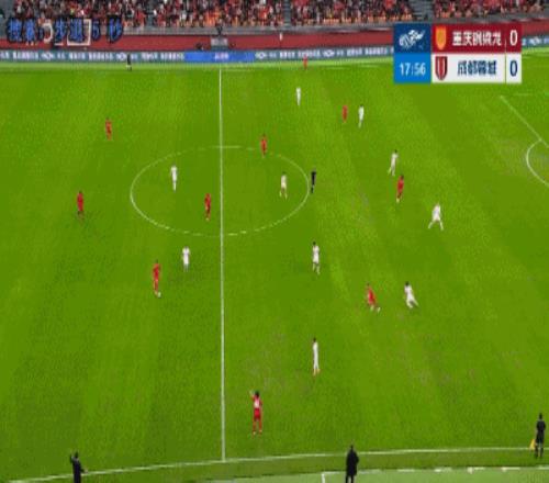 上半場補時5分鐘,半場結束,重慶銅梁龍0-2成都蓉城。