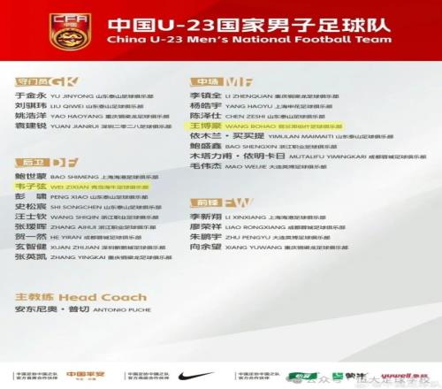 韋子弦、王博豪入選U23集訓名單。為備戰2026年名古屋亞運會,隊伍將于3月22日至4月1日赴陜西省西安市組織集訓并參加西安國際足球錦標賽。
