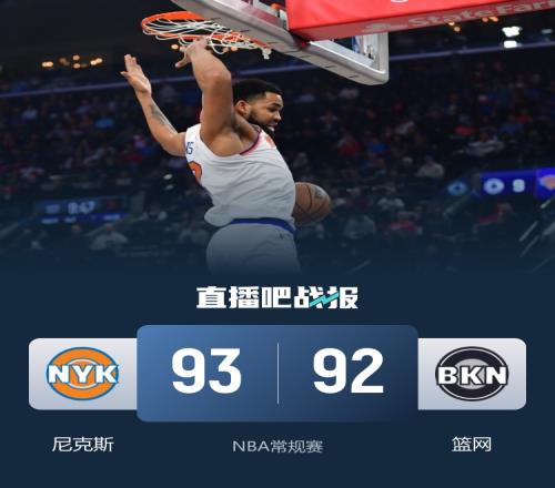 上半場,尼克斯開局慢熱,連續打鐵失誤,反倒是籃網內外開花逐漸占據場上主動,米諾特還飆中壓哨三分,次節尼克斯進攻回暖,輪番沖擊內線連投帶罰縮小分差,籃網穩扎穩打保持微弱優勢,半場戰罷籃網50-44領先尼克斯。下半場,尼克斯7-0完成反超,此后兩隊陷入纏斗,克拉克森三分引領球隊11-0的攻擊波取得兩位數優勢,末節籃網轟出17-0強勢反超,尼克斯回敬8-0的攻擊波奪回優勢。籃網最后時刻落后1分,在僅剩1.5秒的情況下開球給后場,最終,尼克斯93-92險勝籃網。