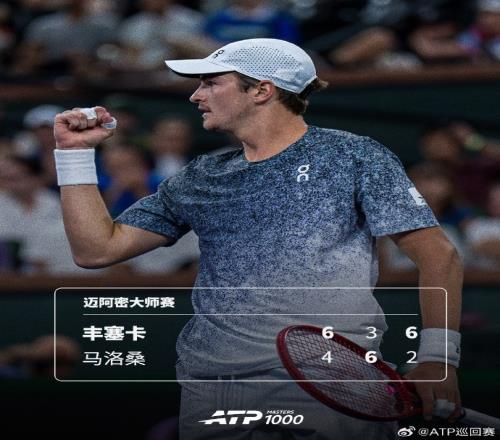 ATP邁阿密大師賽:豐塞卡21擊敗馬洛桑,第二輪將戰阿爾卡拉斯