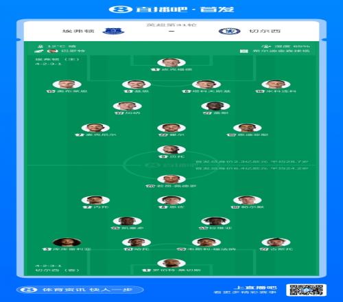 切爾西首發:1-桑切斯、3-庫庫雷利亞、21-哈托、27-古斯托、29-福法納、25-凱塞多、45-拉維亞、8-恩佐、10-帕爾默、7-內托、20-若昂·佩德羅