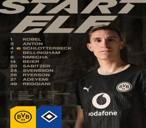 體育播報3月22日宣 德甲第27輪比賽,多特將在主場迎戰漢堡。目前,多特已經公布了本場比賽的首發陣容,施洛特貝克領銜,小貝林厄姆、阿德耶米出戰。