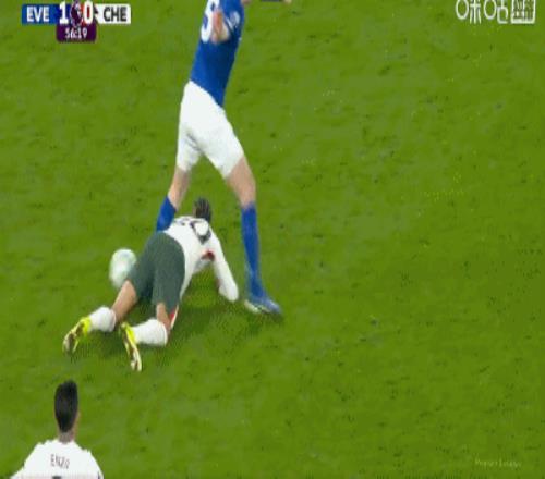 第21分鐘,蓋伊放倒帕爾默,裁判示意沒有問題
