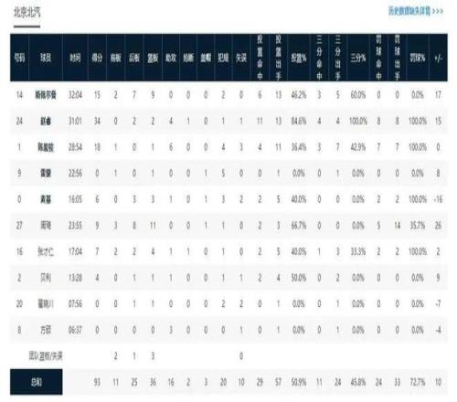 從這場比賽的數據來看,周琦的表現比較一般,在出戰24分鐘時間里得到了9分11個籃板的數據。據北京媒體人勇方方表示,有不少北京球迷對周琦的表現非常不滿。不過實話實說,周琦這場比賽的得分之所以比較低,主要是因為球權不多,僅僅出手了三次。不過在護框和防守方面,周琦的表現還是給了球隊很大幫助的,這點從周琦的正負值上能夠看出來。周琦這場比賽的正負值高達+26,是全場最高的球員,這足以說明了他在場上的作用。