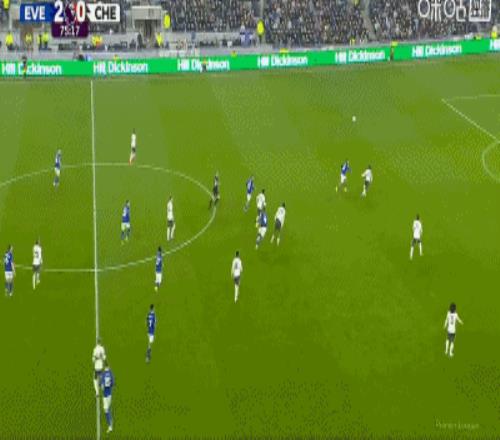 第33分鐘,埃弗頓通過反擊機會打破僵局,加納中圈送出直塞,貝托拼速度將韋斯利·福法納甩在身后,隨后面對桑切斯挑射破門。