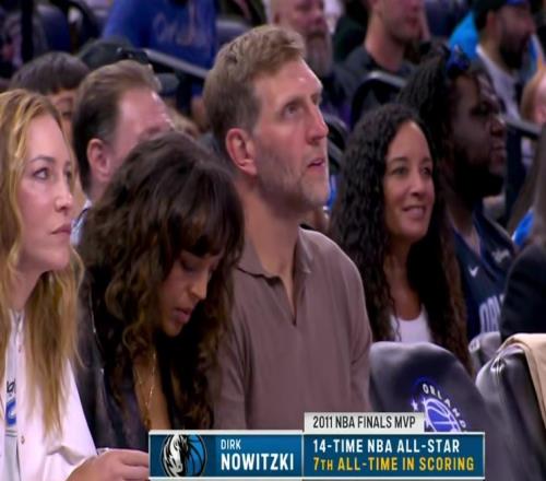 鏡頭捕捉到,獨行俠名宿諾維茨基來到現場觀看比賽。