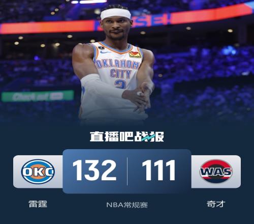 比賽開(kāi)始,雷霆上來(lái)就9-0建立主動(dòng)權(quán),隨后雷霆首發(fā)五虎輪番發(fā)力擴(kuò)大領(lǐng)先,但奇才回應(yīng)9-0一度反超,隨后雙方展開(kāi)拉鋸戰(zhàn),首節(jié)兩隊(duì)打成32平,次節(jié)雷霆一波11-0重新建立主動(dòng)權(quán),但奇才10-2迅速回應(yīng)追平,隨后雙方拉鋸戰(zhàn),沖突過(guò)后兩隊(duì)4人被驅(qū)逐,半場(chǎng)雷霆領(lǐng)先5分。下半場(chǎng)雙方展開(kāi)拉鋸戰(zhàn),奇才全民皆兵持續(xù)追分,亞歷山大連續(xù)單打單節(jié)轟下16分回應(yīng),雷霆三節(jié)還領(lǐng)先7分,末節(jié)奇才崩盤半節(jié)不得分,雷霆轟13-0一波流帶走比賽,最終雷霆132-111輕取奇才。