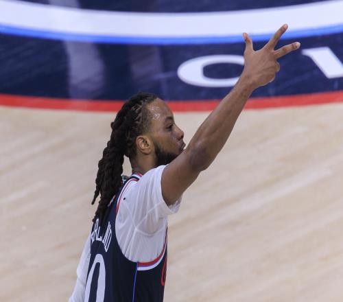 第一節(jié),快船后衛(wèi)加蘭得分助攻一肩挑,打了9分鐘5投4中,三分3中2拿到10分3助攻1搶斷,正負(fù)值-5。