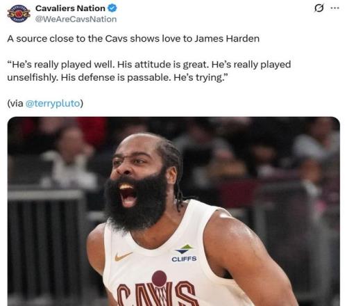 面對哈登這樣的表現(xiàn),騎士隊內(nèi)人士稱贊到:“他打得真好,態(tài)度無可挑剔,打球非常無私,同時防守也達到了合格水平,能夠看出他在全力以赴。”