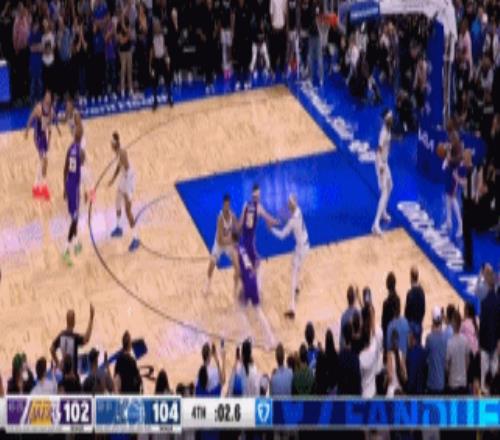 湖人去了奧蘭多,干到了最后一秒,老詹在邊線防守搶回來一個機會。
