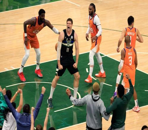 從籃網到湖人,從雄鹿到快船。他不再是那個低位單打的內線核心,變成了空間型五號位,蹲底角、擋拆外彈、接球三分。2021年雄鹿奪冠,他的三分和護筐是冠軍拼圖里不可或缺的一塊。