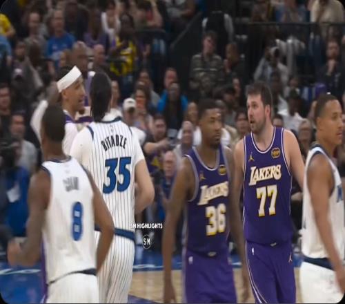 比賽第三節(jié),湖人當(dāng)家球星盧卡·東契奇和魔術(shù)中鋒戈加·比塔澤發(fā)生口角,最后雙方均被裁判吹罰技犯。