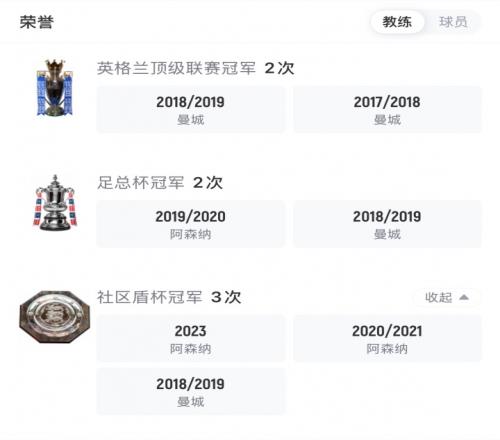 阿爾特塔教練生涯榮譽,包含曼城助教時期以及阿森納主帥時期